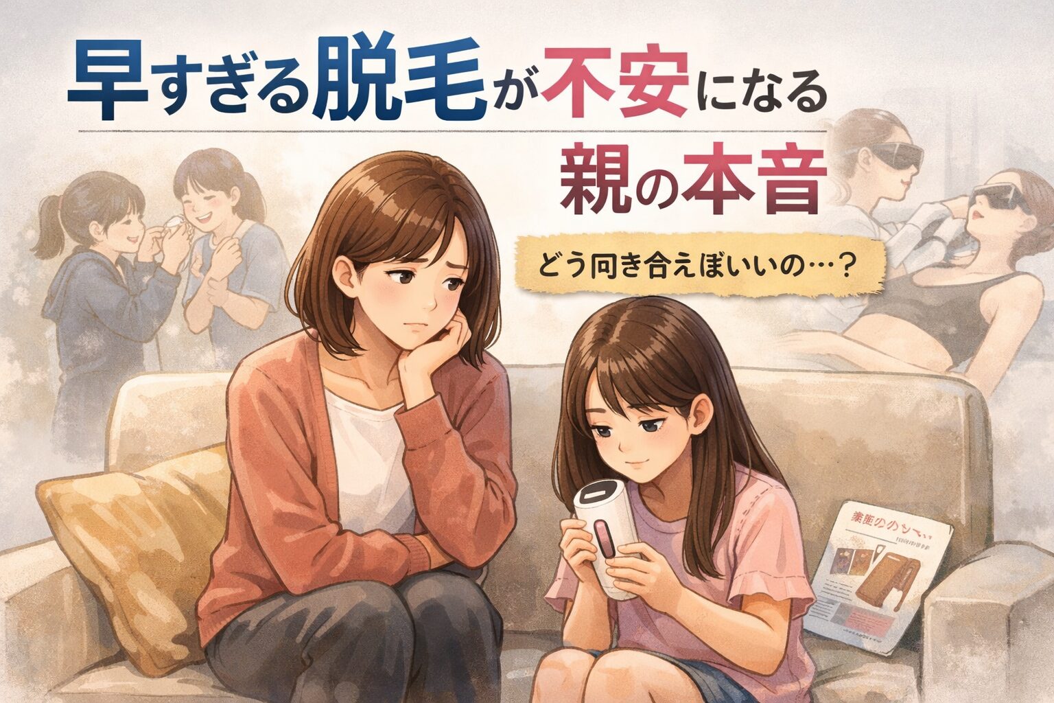 こんな方におすすめ 子どもから「脱毛したい」と言われ、どう返せばいいか分からなくなった親御さん 「まだ早いのでは」と感じながらも、その不安を言葉にできずにいる方 子どもの自己肯定感を下げずに、選択を支える方法を探している方 子どもから「脱毛したい」と言われた瞬間、親の頭の中には答えのない問いが一気に浮かびます。反対した方がいいのか、尊重すべきなのか。それとも、まだ何も言わず様子を見るべきなのか。 今の時代、脱毛は珍しいものではありません。情報も選択肢も揃っています。それでも親の胸に残るのは、はっきりしない ...